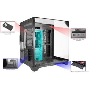 Gab aquario visao infinita 1 micro k3d3 - Gabinete gamer aquário visão infinita cg-k3d3 micro atx 01 um ano de Painel, parte superior e vidro lateral temperado 3mm Filtro anti-poeira inferior de encaixe modelo gaveta Hd áudio Botão power, reset, led Gabinete gamer aquário visão infinita cg-k3d3 micro atx Especificações técnicas: Placa-mãe compatível: micro atx e itx caso utilize water cooler ou fan cooler na lateral interna, largura máx. Da placa-mãe 200mm; Caso não utilize water cooler ou fan cooler na lateral interna, gabinete compatível com todas placas-mãe matx Dimensões do chassi : aLP 365275345mm Dimensões do gabinete: : aLP 380275350mm Altura da cpu cooler: até 160mm Placa de vídeo: até 240mm caso utilize water cooler ou fan cooler na lateral interna, largura máx. Da placa de vídeo 200mm; caso não Utilize water cooler ou fan cooler na lateral interna, gabinete compatível com placa de vídeo de largura máx. 240mm Slots de expansão: 04 Fontes de alimentação compatíveis: padrão atx Portas usb: 2 Usb 2.0 + 1 usb3.2gen1 typea Contém atrás da placa mãe suporte de fixação de Hd 13.5'' + 2 de 2,5''ssd Chassi: 0,5mm Refrigeração: Traseira: 1 fan 120x120mm opcional Interna vertical: 2 fans 120x120mm opcional Inferior: 2 fans 120x120mm opcional Compatível com water cooler 120mm parte traseira, Ou de 240mm parte interna vertical fans opcionais não acompanham o produto, devem ser adquiridos separadamente Embalagem: Dimensões cxlxa : : 425x375x480mm Quantidade: 01 peça por caixa Peso líquido: 5,3kg Peso bruto: 6,6kg Características gerais do produto: Material: metal e vidro : 90