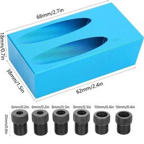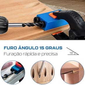 Gabarito para Furação Cavilhas Chanfro 15 Graus 6 a 10mm Hole Jig Dremax Gabarito Hole JIG Portátil para furação em ângulos 15 para montagem de móveis. Altere facilmente entre brocas de tamanho 6, 8 ou 10mm, para furação de qualquer tipo de madeira, posição e ângulo. - Marca: Dremax - Referência: GAB003 - Gabarito JIG para furar com broca de 6, 8 e 10mm - Utilize com grampos sargento e brocas para criar esses furos perfeitos em madeira, criar ou reparar juntas de madeira - Altere facilmente entre brocas de tamanho 6, 8 ou 10mm, para furação de qualquer tipo de madeira, posição e ângulo - Solução para furar madeira - Material do gabarito: alumínio - Material dos anéis: aço - Duas guias de perfuração - 6 anéis com rosca para guias de 6mm / 8mm e 10mm - Com o Gabarito você pode criar furos perfeitos em ângulos de 15 - Indicado para montagem de estantes, prateleiras, etc - Furação em ângulos de 15 - Não contém escala de medição - 1 Posicionador - 2 Anéis de rosca de 6 mm - 2 Anéis de rosca de 8 mm - 2 Anéis de rosca de 10 mm - Peso bruto: 180 gramas - : 90 dias Marca: Não Informado
