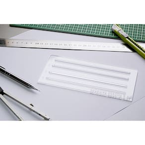 Fabricado em acrílico de alta qualidade, o gabarito possui espessura de 2mm, seguindo o padrão de desenho técnico. Além disso, ele não possui chanfro, garantindo um traçado limpo e preciso.
