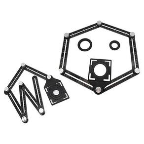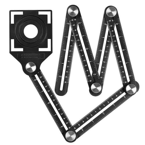 - Marca: Charbs - Modelo: CH00103 - Diâmetros: 25 mm - 40 mm - 45 mm (Qualquer diâmetro entre 25mm e 45mm é compatível) - Material: Alumínio Anodizado Preto - Comprimento total: 1 metro - Fornece medidas, recortes e encaixes perfeitos e profissionais - Fabricado em Alumínio Anodizado, que possui maior resistência a corrosão e ao calor, além de não se desgastar com facilidade. - Graduação em Milímetro e em Polegada, além de gravação a Laser em todas as suas 6 réguas/seções - Cada régua tem o comprimento linear de 17 cm, totalizando 102 cm. Cada régua também possui o centro vazado para que uma régua possa passar por dentro da outra. - A ligação entre as réguas é feita através de um parafuso e porca confeccionados em alumínio, totalizando assim 6 parafusos e 6 porcas. - Juntamente com as 6 réguas vai um gabarito de plástico ABS, que serve para medir caixinha de luz, e medir luvas roscadas para registro de chuveiro e torneiras que serão revestidos com cerâmica, porcelanato e azulejo - Cada gabarito possui 3 diâmetros destacáveis de 25mm, 40mm e 45mm, qualquer medida entre 25 e 40 mm é compatível para ser medido por esse gabarito é só respeitar o tamanho da broca diamantada a ser usada. - Cada kit acompanha 3 marcadores para canos nos seguintes diâmetros: 25mm, 40mm e 45mm (qualquer diâmetro entre 25mm e 45mm é compatível). - Recomendado para uso em: Cortes de cerâmicas, azulejos, porcelanatos, granito, mármore e etc. Este produto também pode ser utilizado em marcenaria.