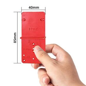 Gabarito Guia para Furação Dobradiças Caneco 35mm e 26mm GAB005 Dremax Faça a instalação de dobradiças de maneira prática e rápida. É um gabarito de furos para instalação de dobradiça com material plástico, leve e resistente. - Marca: Dremax - Referência: GAB005 - Indicado para marcação de furos para instalar dobradiças tipo caneco de 26mm e 35mm - Comprimento: 85mm - Largura: 40mm - Projetado para instalar dobradiças - Gabarito ideal para a fixação correta de suas dobradiças, vai te auxiliar muito a instalar as dobradiças local correto - Marcação de furos 26mm e 35mm, as medidas mais comuns para os canecos de dobradiças - O gabarito é confeccionado em um polímero bem resistente na cor vermelha - Não é recomendado que os furos sejam realizados com o gabarito no local, recomenda-se usar o gabarito apenas para realizar a marcação, preferencialmente com um lápis. - : 90 dias Marca: Não Informado