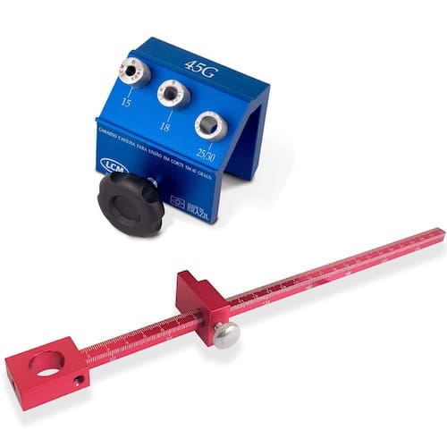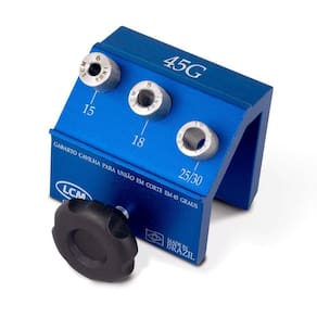 Gabarito para Furação Cavilha 45 Graus Angular GC45 LCM Gabarito para Furação Cavilha 45 Graus Angular GC45 LCM Gabarito para Cavilha 45 graus para cavilha GC45 LCM. Com este gabarito e possível fazer o encaixe e travamento de cantos com o uso de cavilha em peças com cortes idênticos de 45 graus, dispensando o uso de fita de borda. - Marca: LCM - Referência: GC45 - Gabarito ideal para efetuar as marcações de furação para montagem de moveis planejados - Utilize o dispositivo cavilha para recortes de peças de mesma espessuras em corte de 45 graus - Com este gabarito e possível fazer o encaixe e travamento de cantos com o uso de cavilha em peças com cortes idênticos de 45 graus, dispensando o uso de fita de borda - A LCM oferece especiais, diferenciado e de alto padrão. Um produto que busca inovar e sanar necessidades de profissionais e hobbystas. - Fabricado no Brasil - Dimensões da embalagem: 30 x 10 x 8cm - Peso bruto: 630 gramas - : 90 dias Itens inclusos: - 1 Bloco em alumínio anodizado - 1 manipulo para travamento - 1 haste graduada e top perfeitos em alumínio e anodizado - 3 buchas em inox recartilhadas e rosqueáveis de 6mm, 8mm, 10mm - 1 chave allen Marca: Não Informado