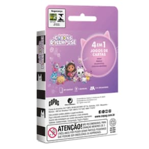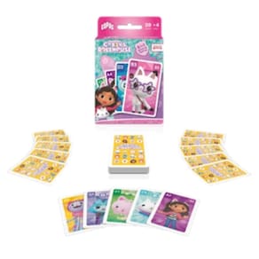 Se divirta com sua família e amigos nesse incrível jogo de cartas 4 em 1 da Gabby’s Dollhouse.