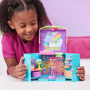 Gabby's Dollhouse Closet Arco-Íris - Sunny 003639 O Armário Arco-Íris abre-se em 4 emocionantes áreas de jogo para sessões fotográficas que são essenciais para os fãs da série Dirije-te ao toucador e ao espelho, que contém três perucas com muito estilo e dois suportes para perucas, para que possas fazer o cabelo e a maquilhagem da Gabby Depois, dirije-te ao closet, que possui três cabides de parede e gavetas para arrumação e duas mudas de roupa diferentes para a Gabby escolher Depois de escolher a roupa, sobe e empurra a gabby para frente e para trás na passadeira, para girá-la Não te esqueças de abrir a tua caixa surpresa, para descobrir o acessório surpresa Quando estiver pronta, usa a escada para subir até ao estúdio fotográfico, onde podes escolher um dos 4 fundos diferentes para a sua sessão de fotos. Tipo de produto: Bonecas Inclui: 1 Armário, 1 personagem, 1 escada, 2 suportes para peruca, 1 câmera, 1 tripé, 9 acessórios, 2 papelões dupla face decorados, 1 caixa surpresa e 1 folha de instruções. Idade Recomendada: +3 Anos Dimensões: Largura x Profundidade x Altura: 35,56 x 13,34 x 40,64cm Homologação Inmetro: CE-BRI/IQB 005170 55017/21-001 Ean: 7899573636395