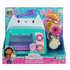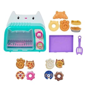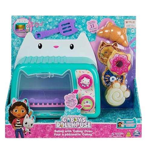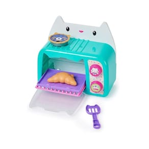Prepare-se para um dia emocionante e cheio de diversão com o Forninho do Cakey Cat com Luz e Som. Ele apresenta mais de 11 acessórios de cozinha, para que você possa assar diversos tipos de comida, desde donuts e croissants até deliciosas pizzas para gatinhos, e muito mais! O Forninho do Cakey Cat também possui luzes e sons, para que você possa colocar suas guloseimas na assadeira e, enquanto cozinham, pressione o botão para acender as luzes e gire o outro botão para ouvir sons. Quando as guloseimas estiverem prontas, use a espátula de gatinho para retirar com cuidado as comidinhas do forno e coloque-as na assadeira e use as 2 coberturas dupla-face de chip art para decorar suas deliciosas criações, antes de servi-las. Para uma última surpresa, escaneie o código QR, encontrado na embalagem do produto, para desbloquear uma recompensa especial no aplicativo Gabbys Dollhouse (disponível para iOS e Android).