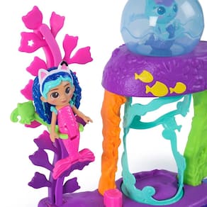 Nas profundezas cintilantes de Gabby?s Dollhouse: The Movie, Gabby se transforma em uma sereia curiosa e cheia de coragem. No fundo do mar, descobre um espaço mágico repleto de corais, conchas e surpresas escondidas. Ao toque de uma patinha brilhante, ela desliza pela parede de corais, em um movimento suave, como uma dança entre as algas. No escorregador, peixinhos revelam seu segredo: mudam de cor ao brincar com a água. Com detalhes vibrantes, plantas aquáticas e uma atmosfera cheia de brilho, o cenário se transforma em palco para aventuras inesquecíveis.