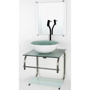 Gabinete 40Cm De Vidro Inox Cuba Redonda Marmore Branco