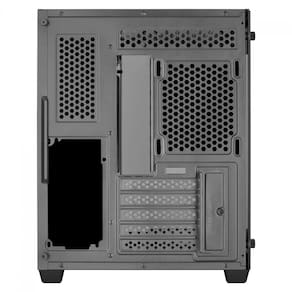 Além disso, sua capacidade versátil suporta até 9 ventiladores na placa traseira, garantindo um resfriamento perfeito sem comprometer a clareza visual interna. Já os dois slots SSD e o espaçoso compartimento de unidade HDD de 3,5" proporcionam opções de armazenamento flexíveis, garantindo que você tenha espaço suficiente para todos os seus dados.