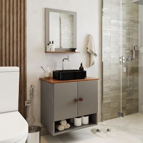 Com um design moderno, ela inclui uma cuba espaçosa e um espelho que amplia a sensação de espaço, tornando seu ambiente mais acolhedor.