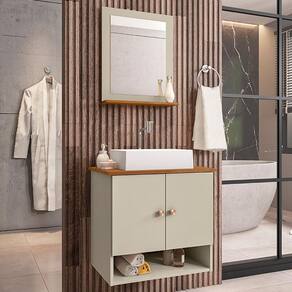 Material da espelheira: MDP de 12 mm no painel e 15 mm na prateleira com espelho de 03 mm de espessura;