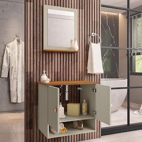 Gabinete Armário 2 Portas Banheiro com Espelho Deli - Off White