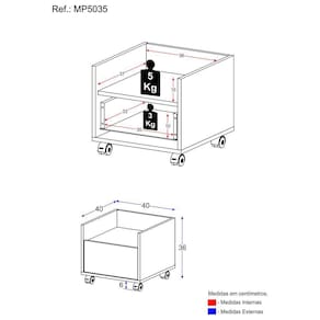 Dimensões do produto montado: Altura: 36cm | Largura: 40cm | Profundidade: 40cm *Você pode consultar as medidas internas na imagem técnica do produto.