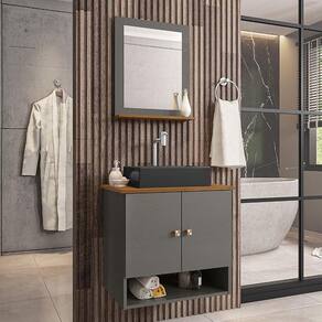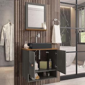Material da espelheira: MDP de 12 mm no painel e 15 mm na prateleira com espelho de 03 mm de espessura;