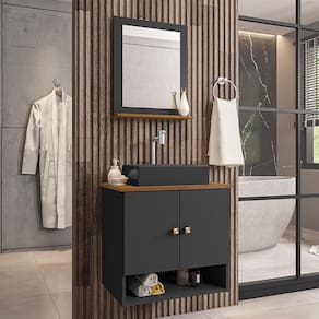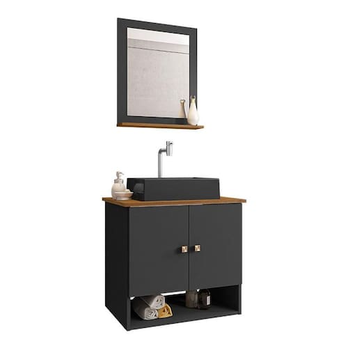 Material da espelheira: MDP de 12 mm no painel e 15 mm na prateleira com espelho de 03 mm de espessura;