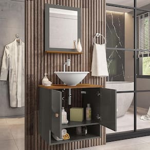 Gabinete Armário Banheiro Deli 2 Portas com Cuba Lume Branca - Cinza