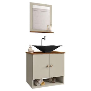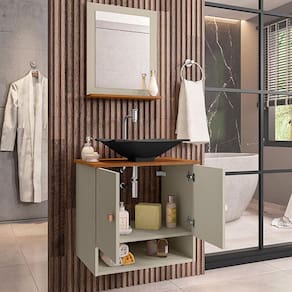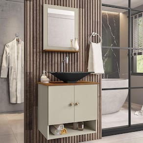 Material da espelheira: MDP de 12 mm no painel e 15 mm na prateleira com espelho de 03 mm de espessura;