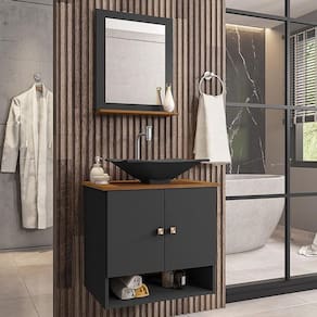 Material da espelheira: MDP de 12 mm no painel e 15 mm na prateleira com espelho de 03 mm de espessura;