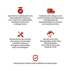 - Acompanha kit ferragens e manual de montagem (montagem não inclusa).