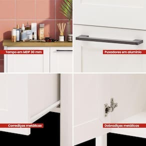 - Tampo em MDP 30 mm padrão Riviera (tonalidade de cor bege) que suporta até 30 kg.