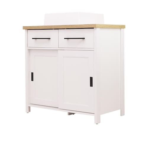 - 2 Portas de abrir e 2 gavetas com corrediças metálicas.