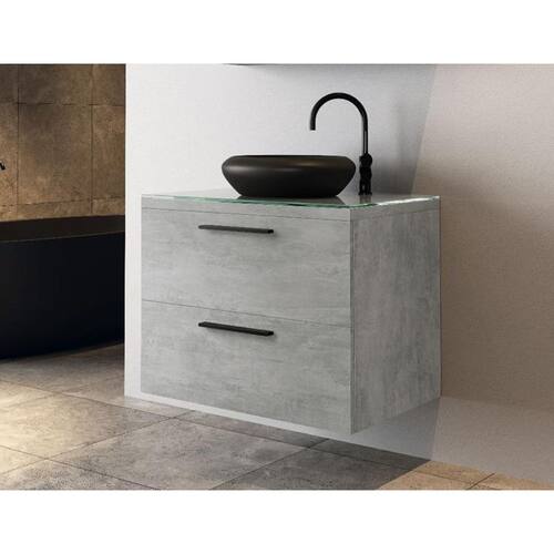O gabinete possui tampo de vidro de 8mm de espessura que da beleza e maior resistência ao seu produto, puxadores em metal, gavetas com corrediças telescópicas e sistema Slow de fechamento suave, também possui divisórias internas que facilitam a organização de seu banheiro, conta com uma cuba de Louça que dá maior sofisticação.