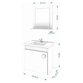 Linha: Clean Estrutura do produto: 100% MDF Acabamento: Pintura UV Produto necessita de monatgem: sim Qtde de portas: 1 Qtde de gavetas: nao tem Qtde de parteleiras: 1 na espelheira Possui Toalheiro: nao tem Porta com pistão à gás: nao Estrutura do fundo: nao tem Qde de Puxadores: 1 Material do Puxador: ABS pintado Material das Dobradiças: Metálicas Armário possui espelheira: Sim Armário Acompanha pia/lavatório: Sim Material da pia/lavatório: Mármore Sintético