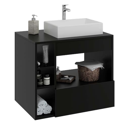 O Gabinete Armário de Banheiro Paris com Cuba é a solução perfeita para organizar o espaço do seu banheiro, seu design prático permite que você organize seus pertences da forma que melhor lhe agradar. O móvel acompanha Cuba, possui três nichos laterais e um maior no centro, sua gaveta possui corrediças telescópicas para dar maior resistência e durabilidade ao móvel.