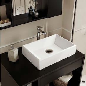 Dimensões da Cuba Altura: 90 mm Largura: 270 mm Comprimento: 390 mm Material: Mármore Sintético