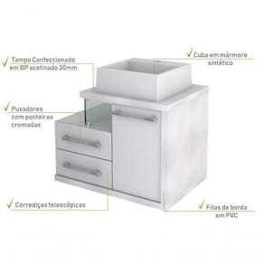 Gabinete Armario P/banheiro (balcao C/cuba Q355) Legno 650 Branco Chess C/branco Chess Sobre o ProdutoConjunto Balcão C/Cuba Q355 Legno 650 Perffect AcetinadoDescrição do Produto:O Conjunto (Balcão + Cuba) Legno GCLG650 é um produto compacto, de design contemporâneo e minimalista, projetado para se encaixar no seu espaço, composto por um gabinete com cuba de apoio, 02 gavetas laterais e detalhe em vidro 10mm, sendo perfeito para organizar suas coisas e fazer parte da decoração do seu linha Legno combina a leveza do branco e detalhes em vidro com tons amadeirados, conferindo uma personalidade contemporânea aos móveis de design minimalista e traços retos. Produtos que aliam funcionalidade e praticidade ao seu dia a dia são características marcantes desta coleção!Itens Inclusos:1 Conjunto Balcão C/CubaDimensões dos Produtos:Gabinete: 65 x 45 x 50 cmCuba 35 x 35 x 11,5 cmInformações Logísticas (Comp. X Prof. X Alt.) 70 x 50 x 56 cm - Peso: 28,04 KgPeso Total: 28,04 KgObservações:Não acompanha acessórios decorativos. Imagens meramente ilustrativas.Informações Técnicas / Características:- Cor do Produto: Perffect Acetinado - Marca: Compace- Modelo: GCLG650- Linha: Legno- Material: Mdp - Acabamento: Perffect Acetinado- Escala de Brilho: Fosco- Fita de Borda: Pvc- Possui Portas: 1- Tipo de Porta: Bater- Tipo da Dobradiça: Metálica- Possui Gavetas: 2- Tipo da Corrediça: Telescópica- Possui Chave: Não- Peso Máximo por Gaveta: 3 kg- Material do Puxador: Abs - Possui Pés: Não, suspenso - Possui Espelho: Não- Possui Vidro: Sim- Acompanha Cuba / Lavatório: Sim, de Mármore Sintético- Furação para Cuba / Lavatório: Não- Tipo da Cuba: Apoio- Cor da Cuba: Branca- Suporta Até (kg): 19 kg - Peso Lí.: 26,09Kg- Recomendações de Uso, Manutenção e Limpeza: Para a limpeza, utilize flanela seca ou pano macio levemente umedecido em água. Utilize um pano seco em seguida. Evite com produtos químicos (solventes, thinner, acetona, etc) e não utilize nenhum tipo de esponja de aço.- Necessita de Montagem: Sim / Acompanha Manual de Montagem- Complexidade da Montagem: Média: pode ser montado por mais de uma pessoa e/ou necessite de maior conhecimento para montagem.- Garantia: 6 meses Material: Mdp | Acabamento: Perffect Acetinado | Escala de Brilho: Fosco | Fita de Borda: Pvc | Possui Portas: 1 | Tipo de Porta: Bater | Tipo da Dobradiça: Metálica | Tipo de Produto: Gabinete de Banheiro | Limite de unidades por venda: É possível comprar até 1 unidade por venda. | Fabricante: Compace | Quantidade máxima de pedido: 1 | Comprimento: 65 | Largura: 45 | Altura: 53 | Profundidade: 43 | Preço tabelado: 448 | Cor: Multicolorido | Certificação de teste externa: Não Aplicável | Baterias são necessárias?: false | Palavras-chave de Pesquisa: Não aplicável | Fonte de energia: Não aplicável | da peça: | Componentes incluídos: | Principais Características do Produto 1: | Dimensões do item P x L x A: | Exige montagem: | Principais Características do Produto 2: | Peso do item: | Principais Características do Produto 0: | Is Fragile: | Quantidade de itens: | do modelo: | de caixas: Cor: Branco Chess C/Branco Chess