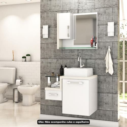 Sobre o ProdutoGabinete Legno 630Descrição do Produto:O Gabinete Legno 630 GTLG630 possui 01 porta e 01 gaveta lateral, além do tampo de apoio em vidro linha Legno combina a leveza do branco e detalhes em vidro com tons amadeirados, conferindo uma personalidade contemporânea aos móveis de design minimalista e traços retos. Produtos que aliam funcionalidade e praticidade ao seu dia a dia são características marcantes desta coleção!Itens Inclusos:1 GabineteDimensões dos Produtos:Gabinete Legno 630: 65 x 43 x 51 cmInformações Logísticas (Comp. X Prof. X Alt.) 47 x 47 x 55 cm - Peso: 19,91 KgPeso Total: 19,91 KgObservações:Não acompanha acessórios decorativos. Imagens meramente ilustrativas.Informações Técnicas / Características:- Cor do Produto: Perffect Acetinado- Cor Predominante: Branco- Marca: Compace- Modelo: GTLG630- Linha: Legno- Material: Mdp - Acabamento: Perffect Acetinado- Escala de Brilho: Fosco- Fita de Borda: Pvc c/colagem PUR- Possui Portas: 1- Tipo de Porta: Bater- Tipo da Dobradiça: Metálica- Possui Gavetas: 1- Tipo da Corrediça: Telescópica- Possui Chave: Não- Peso Máximo por Gaveta: 3 kg- Material do Puxador: Abs- Possui Prateleiras: 1- Peso Máximo por Prateleira: 05 kg- Possui Pés: Não, suspenso - Possui Vidro: Sim - Furação para Cuba / Lavatório: Não - Suporta Até (kg): 20 kg- Comprimento: 65cm- Profundidade: 43cm- Altura: 51cm - Peso Lí.: 18,45Kg- Recomendações de Uso, Manutenção e Limpeza: Para a limpeza, utilize flanela seca ou pano macio levemente umedecido em água. Utilize um pano seco em seguida. Evite com produtos químicos (solventes, thinner, acetona, etc) e não utilize nenhum tipo de esponja de aço.- Necessita de Montagem: Sim / Acompanha Manual de Montagem- Complexidade da Montagem: Média: pode ser montado por mais de uma pessoa e/ou necessite de maior conhecimento para montagem.- Garantia: 6 meses
