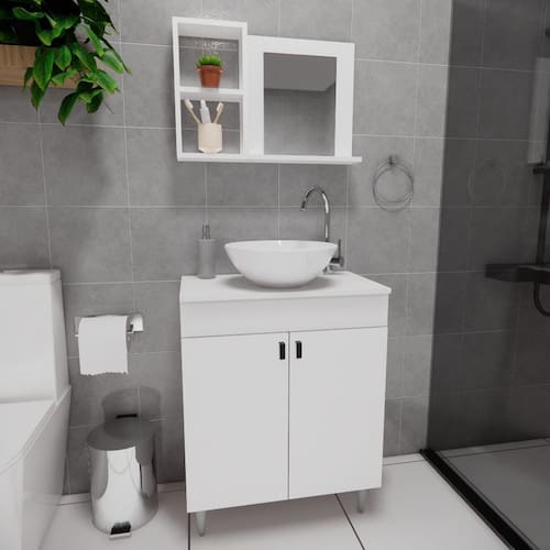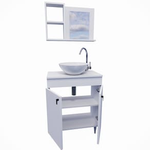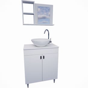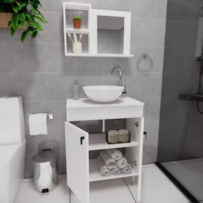 Este gabinete de 60cm com cuba e espelho é a escolha perfeita para adicionar praticidade e elegância ao seu banheiro. Ele oferece amplo espaço de armazenamento para organizar itens de higiene e produtos pessoais.