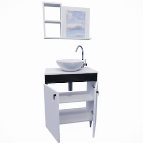 Este gabinete de 60cm com cuba e espelho é a escolha perfeita para adicionar praticidade e elegância ao seu banheiro. Ele oferece amplo espaço de armazenamento para organizar itens de higiene e produtos pessoais.