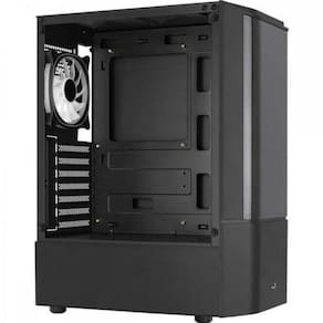 Gabinete ATX QUANTUM V2 Preto AEROCOOL Acabamento em pintura metálica cinza especial com um design de painel frontal de acrílico, este gabinete permite uma alta visibilidade de seus coolers de LED frontais ao mesmo tempo que oferece uma aparência premium e de ficção. Este Mid Tower de alto desempenho oferece um painel lateral de vidro temperado que mostra todo o interior do seu equipamento.