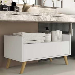 O Gabinete Balcão Banheiro 80 cm com Pés Retrô Multimóveis é uma solução prática para você aproveitar aquele espaço restrito e complementar seu ambiente. Produzido em MDP com acabamento acetinado (cerca de 20% de brilho), que garante maior durabilidade e facilidade na limpeza, possui 1 gaveta com amplo espaço interno e corrediças metálicas que proporcionam mais leveza no manuseio. Os pés retrô, em polipropileno, dão um charme especial ao móvel deixando-o com um visual leve e permitindo você compor um ambiente com ar vintage e moderno ao mesmo tempo. Seu design clean permite que ele seja utilizado em diferentes ambientes, adaptando-se conforme sua necessidade.