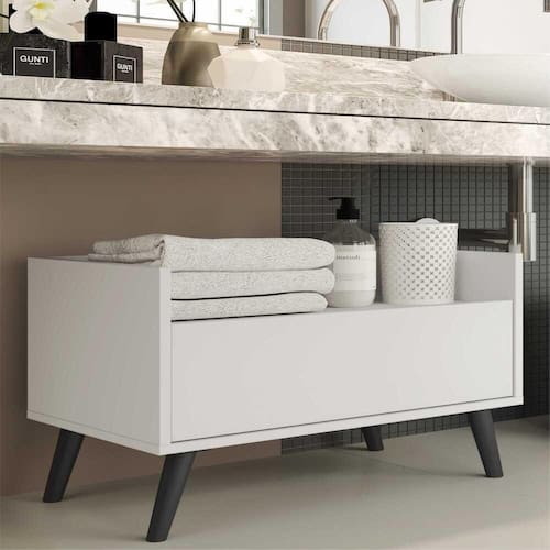 O Gabinete Balcão Banheiro 80 cm com Pés Retrô Multimóveis é uma solução prática para você aproveitar aquele espaço restrito e complementar seu ambiente. Produzido em MDP com acabamento acetinado (cerca de 20% de brilho), que garante maior durabilidade e facilidade na limpeza, possui 1 gaveta com amplo espaço interno e corrediças metálicas que proporcionam mais leveza no manuseio. Os pés retrô, em polipropileno, dão um charme especial ao móvel deixando-o com um visual leve e permitindo você compor um ambiente com ar vintage e moderno ao mesmo tempo. Seu design clean permite que ele seja utilizado em diferentes ambientes, adaptando-se conforme sua necessidade.