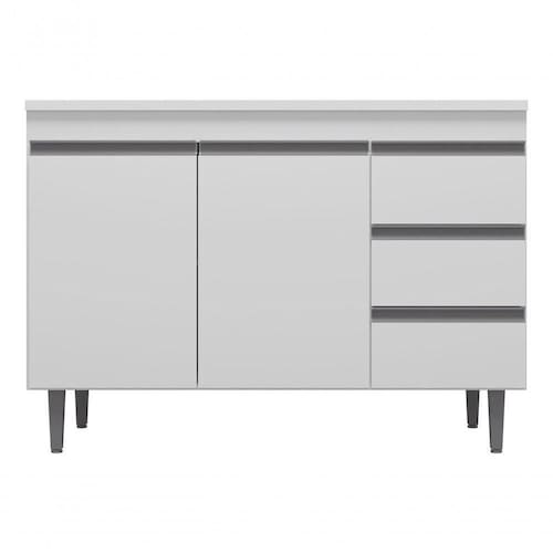 Além disso, conta com 2 portas convencionais e 3 gavetas com deslizamento suave, oferecendo amplo espaço interno para organizar seus utensílios e facilitar sua rotina. Não perca a oportunidade de levar para casa esse lindo balcão Andréia!