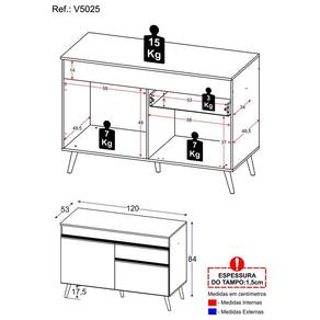 Altura: 84cm | Largura: 120cm | Profundidade: 53cm (balcão com tampo)