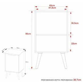 Dimensões do produto montado: Altura: 80cm | Largura: 45cm | Profundidade: 38,7cm *Você pode consultar as medidas detalhadas na imagem técnica do produto. *As cores do produto podem sofrer variações de tonalidade de acordo com as configurações do seu dispositivo.