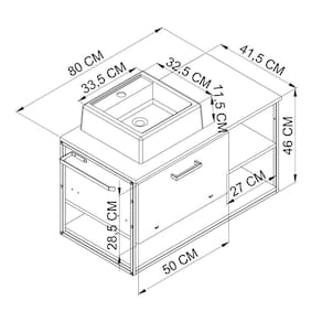 Armário de banheiro para parede com cuba de sobrepor branca e um porta toalhas na lateral para deixar seu ambiente muito mais organizado e espaçoso. Possui uma ampla gaveta e duas prateleiras ideal para guardar toalhas, rolos de papel higiênico e itens de higiene.