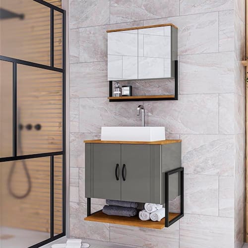 Itens Inclusos: 1 espelheira, 1 gabinete e 1 cuba (não acompanha torneira)