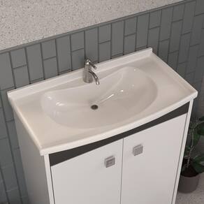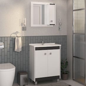 O Gabinete Banheiro com Cuba e Espelheira 60cm Multimóveis CR10058 é produzido em MDP 15mm com acabamento semibrilho, que garante maior durabilidade e facilidade de limpeza. A espelheira possui 1 porta com prateleira interna (suporta até 3kg). O balcão com cuba esculpida em marmorite sintético (já vai com furação para instalação da torneira) proporciona mais requinte ao seu banheiro. Com 2 portas (puxadores em ABS) e prateleiras internas possui amplo espaço para organização de toalhas, itens pessoais e de higiene. Os pés com regulagem de altura permitem um perfeito nivelamento do móvel.