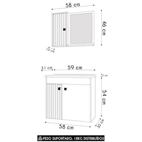 Conteúdo da Embalagem: 1 Espelheira, 1 Gabinete de Banheiro, 1 Cuba.