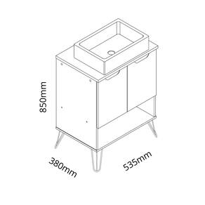 O gabinete Jade é ideal para deixar o ambiente do seu banheiro moderno. Duas portas para armazenar pequenos e médios objetos, acompanha cuba e pés de ferro com sapata de plástico. Possui acabamento UV e atóxico.