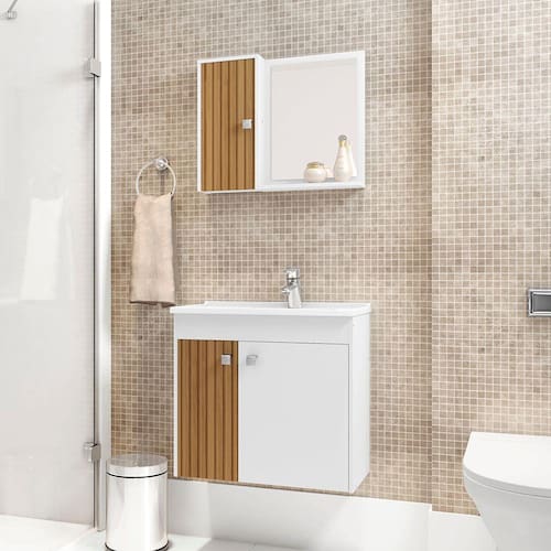 Esse incrível e lindo conjunto da gabinete para banheiro Munique, composto pelo gabinete/armário mais a espelheira com armarinho, mais a cuba retangular irá conquistar você e toda a sua família.