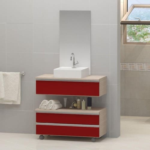 DIFERENCIAIS: Móvel de rodinha pode ser retirado quando for lavar banheiro, facilitando o processo. Acabamento da Cuba: Gel Acabamento da Gaveta: Acetinado Acabamento da Porta: Laca Acompanha Cuba: Sim Acompanha Tampo: Sim Ambiente Principal: Banheiro Cor: Madeirado/Vermelho Cor da Cuba: Branco Cor do Produto: Madeirado/Vermelho Cor Interna: Madeirado Escala de Brilho: Acetinado Escala de Brilho da Gaveta: Semi-Brilho Escala de Brilho da Porta: Brilhante Espessura do Espelho: 3 Formato do Espelho: Retangular Furação para Cuba e Torneira: Sim Gaveta com Chave: Não Itens Inclusos: 1 Gabinete, 1 Cuba, 1 Espelheira, Kit Fixação e Manual de Instalação Linha ou Coleção: Creta Manual de Montagem e Instalação: https://cdn2.madeiramadeira.com.br/atributo/fabrica-de-gaiolas-joia/1196701-1196036-dicas-para-instalacao.pdf Material da Cuba: Mármore Sintético Material da Gaveta: MDF/MDP Material da Porta: MDP Material do Tampo: MDF/MDP Material Principal: MDF/MDP Medida da Cuba (C x L x P): 35cm x 35cm x 11cm Medida da Espelheira (A x L x P): 60x40x2 Medida do Gabinete (A x L x P): 60x60x40cm Necessita Montagem: Não Origem do Produto: Nacional Peso: 30 Peso Máximo por Gaveta: 20 Peso Máximo por Prateleira: kg Possui Espelheira: Sim Possui Gabinete: Sim Possui Gavetas: 02 Possui iluminação: Não Possui Pés: Não Possui Portas: 01 Possui Rodízio: Sim Recomendações de Uso, Manutenção e Limpeza: Produto vai montado, é necessário somente fixar na parede e realizar ligações hidráulicas Rodízio com Trava: Não Tamanho do Espelho (A x L): 60x40cm Tipo de Corrediça da Gaveta: Metálica Telescópica Tipo de Dobradiça/Corrediça da Porta: Metálica Tipo de Gabinete: Gabinete Suspenso Tipo de Porta: Misto (Bater e Basculante) Tipo de Puxador da Gaveta: Embutido Tipo de Puxador da Porta: Externo Marca: Gabinetes Joia