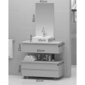 -GABINETE PARTE BAIXO com 60cm comprimento / 40cm largura / 36cm altura. Tem puxador de alumínio nas duas gavetas e rodinhas de silicone