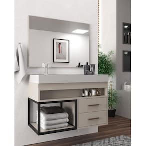 O Gabinete Banheiro com Espelheira 80cm Multimóveis é produzido em MDF (15mm) com acabamento em BP que garante maior durabilidade e resistência, além de facilitar a limpeza. O balcão com cuba esculpida em marmorite resinado (tampo já vai com furação para instalação da torneira) possui 2 gavetas com corrediças telescópicas, puxadores em alumínio e amplo espaço para organização de toalhas, itens pessoais e de higiene. O detalhe aramado deixa o móvel moderno e proporciona mais requinte ao seu banheiro. A espelheira possui espelho 3mm de vidro (o que evita que a imagem fique distorcida) e lapidado, ou seja, passa por um processo para que as bordas não fiquem cortantes, o que garante maior segurança. Uma opção prática para deixar seu banheiro bonito e organizado.