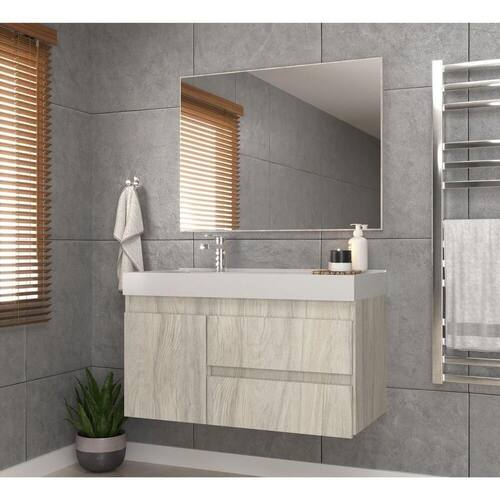 O Gabinete Banheiro com Cuba e Espelheira 80cm Multimóveis é produzido em MDF (15mm) com acabamento em BP que garante maior durabilidade e resistência, além de facilitar a limpeza. O balcão com cuba esculpida em marmorite resinado (tampo já vai com furação para instalação da torneira) possui 2 gavetas com corrediças metálicas e 1 porta com amplo espaço para organização de toalhas, itens pessoais e de higiene. A espelheira possui espelho 3mm de vidro (o que evita que a imagem fique distorcida) e lapidado, ou seja, passa por um processo para que as bordas não fiquem cortantes, o que garante maior segurança. Uma opção prática para deixar seu banheiro bonito e organizado.