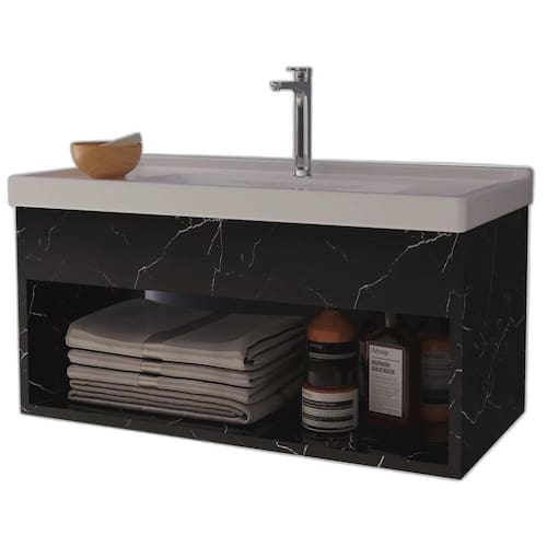 Gabinete Banheiro Cuba E Nicho Suspenso Preto Marmorizado
