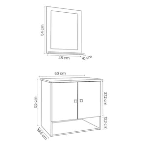 Material da espelheira: MDP de 12 mm no painel e 15 mm na prateleira com espelho de 03 mm de espessura;